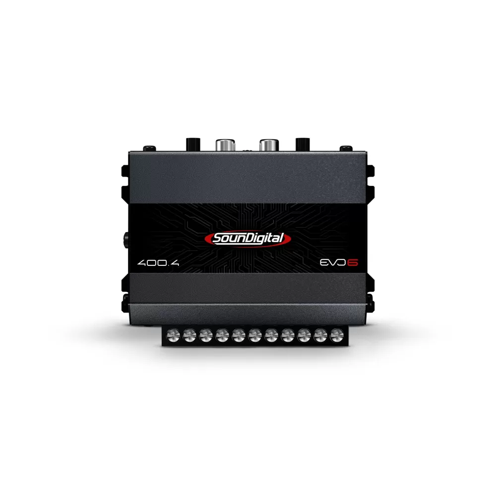 The 400.4 EVO6 is a compact, modern amplifier that delivers 400W RMS of power over 4 channels.