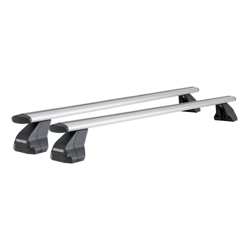 Mπάρες οροφής της σειράς OMEGA PLUS από τον οίκο MENABO, 100% ιταλικής προέλευσης, σχεδιασμού και κατασκευής από υψηλής ποιότητας ανοδιωμένο αλουμίνιο σε ασημί χρώμα με μαύρες λεπτομέρειες. Οι μπάρες είναι ενισχυμένες εξωτερικά με πλαστικοποιημένο κάλυμμα PVC κατά μήκος τους, που προσφέρει ανθεκτικότητα στην διάρκεια του χρόνου και την έκθεση σε εξωτερικές καιρικές συνθήκες. Οι μπάρες OMEGA είναι συμβατές με οχήματα που διαθέτουν απλή οροφή: