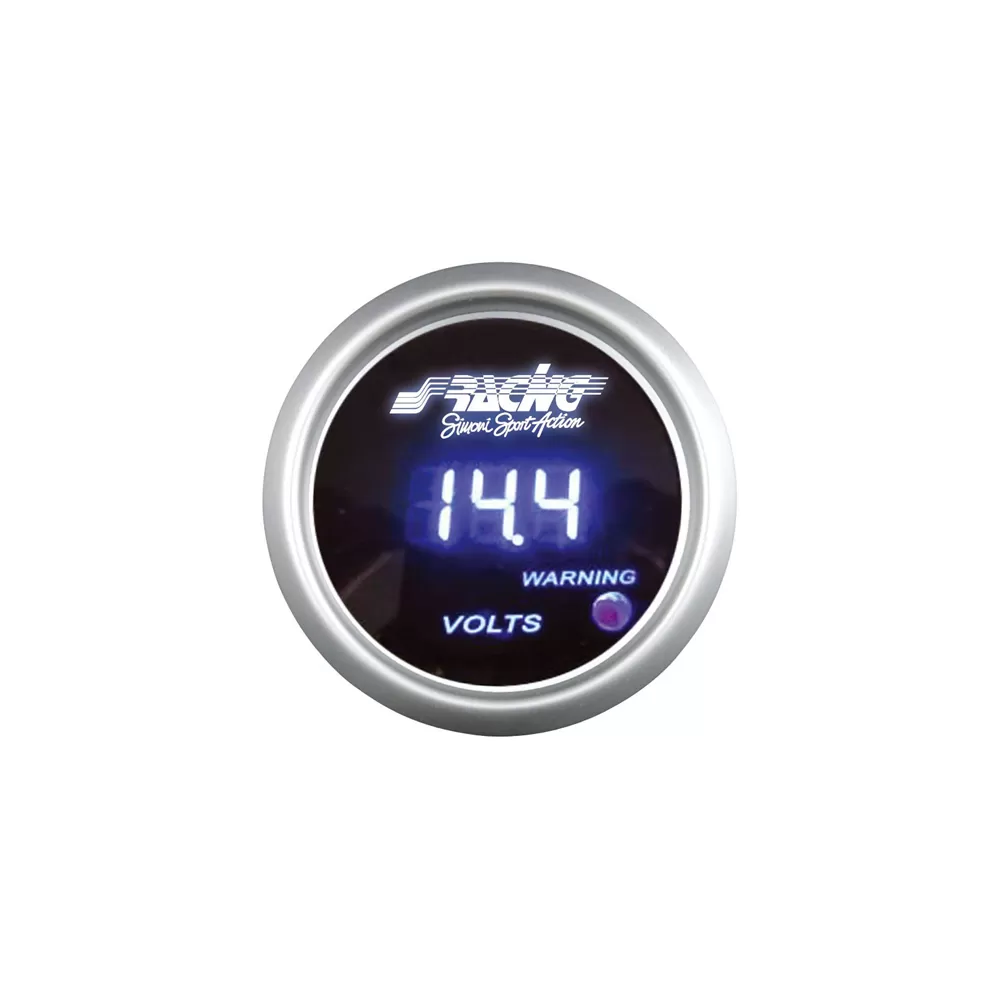Βολτόμετρο ψηφιακό με μαύρη πλάκα και warning led Simoni Racing.Περιλαμβάνεται ο αισθητήρας. Ασημί πλαίσιο. Για τοποθέτηση εσωτερικά στο ταμπλό ή σε ειδική βάση οργάνων. Διάμετρος οργάνου: 52mm (2").
