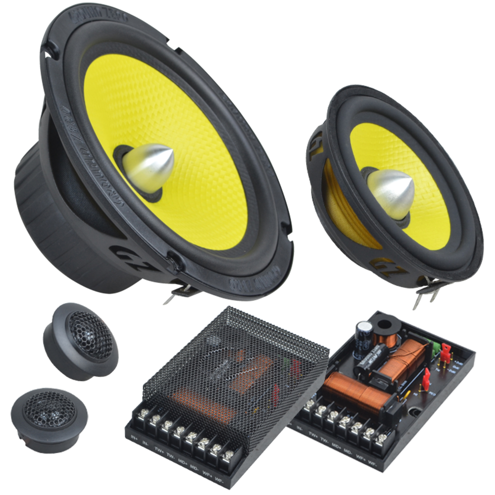 6.5″ 3-way component speaker system with structured HQPP cone and 3-ohms impedance