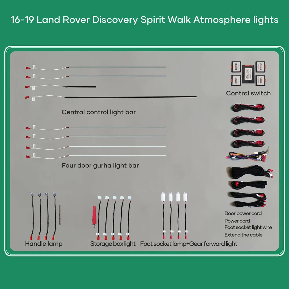 - 19 lights (4 door outline lights, 4 storage box lights, 4 footwell lights, 4 handle lights, 3 central control storage box light)
