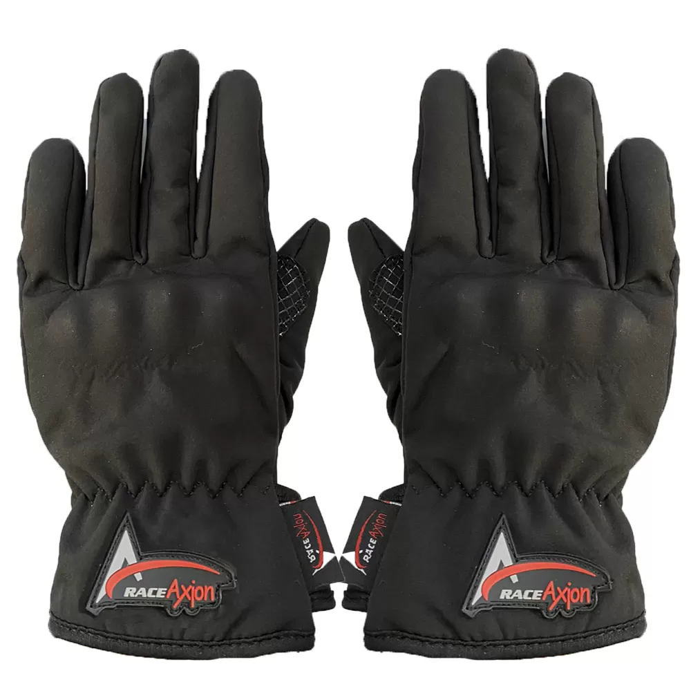 Γάντια μηχανής με λεία υφή με μεμβράνη και κόκκαλο προστασίας σε μαύρο χρώμα, από την εταιρεία RACE AXION.