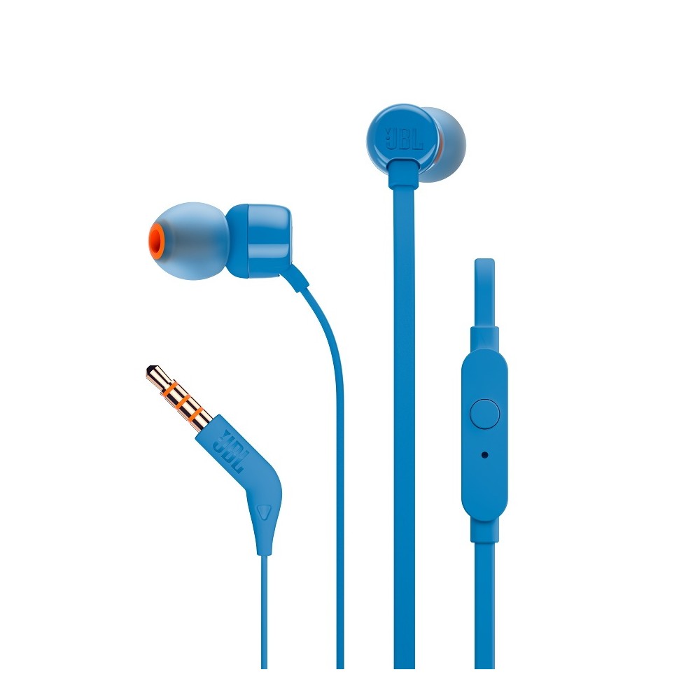 Introducing JBL T110 in-ear headphones. They’re lightweight, comfortable and compact. Under the durable earpiece housing, a pair of 9mm drivers punch out some serious bass, reproducing the JBL Pure Bass sound you’ve experienced in concert halls, arenas and recording studios around the world. In addition, the single-button remote on a tangle-free flat cable lets you control music playback, as well as answer calls on the fly with a builtin microphone. Making the JBL T110 your everyday companion for work, at home and on the road.