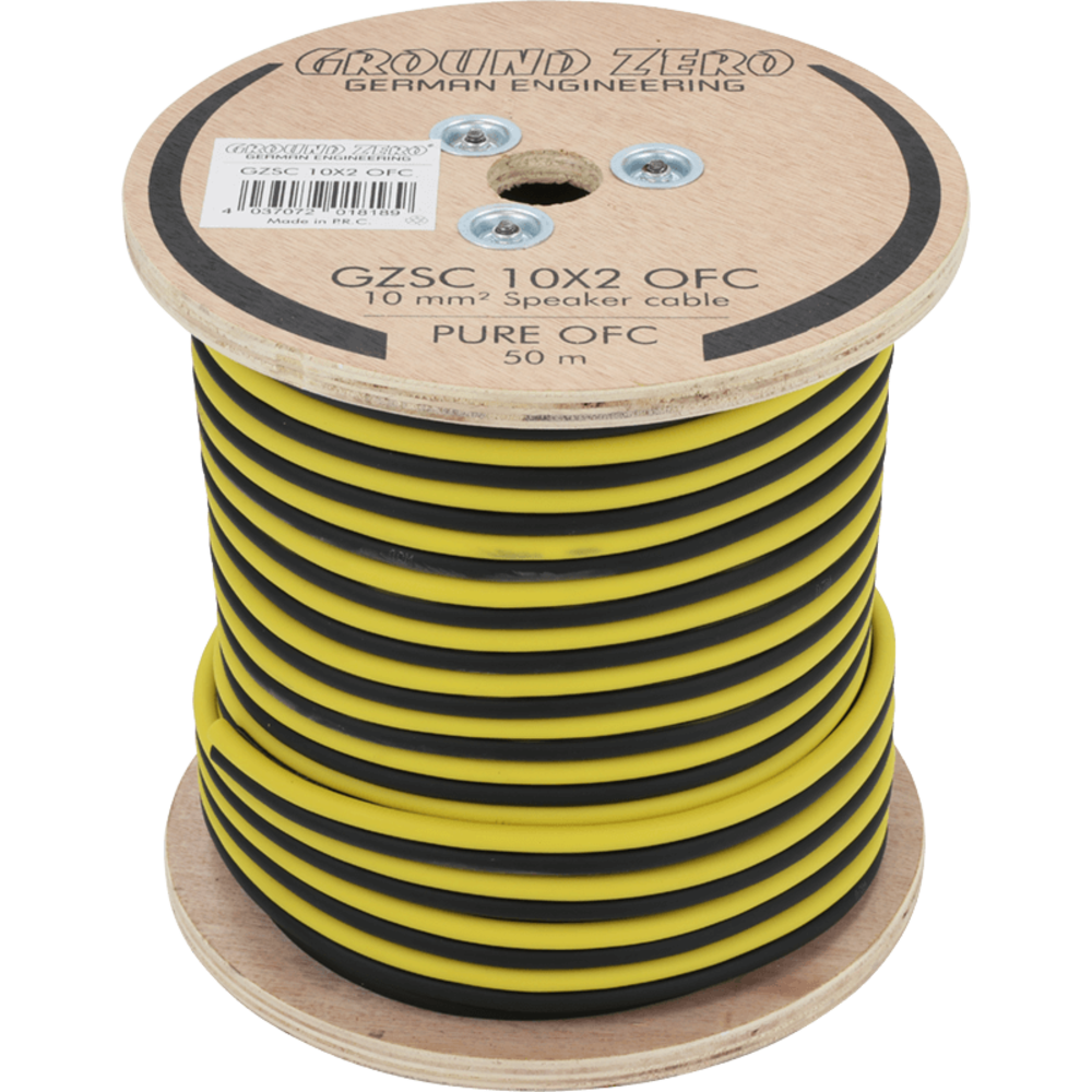 - 2x 10 mm² OFC black and yellow isolated speaker wire / roll