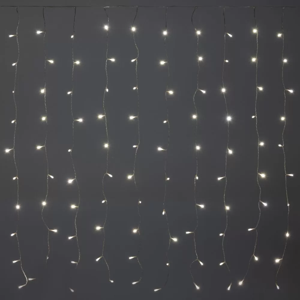 Εσωτερικού και εξωτερικού χώρου κουρτίνα επεκτεινόμενη έως 3 φορές. 200led σε 20 γραμμές, ανα 10εκ, με 10λαμπάκια η καθεμία. Πλάτος 2 μέτρα και ύψος 1 μέτρο. Σταθερό λευκό φως με διάφανο καλώδιο. Συσκευασία σε διάφανο πλαστικό δοχείο με καπάκι.