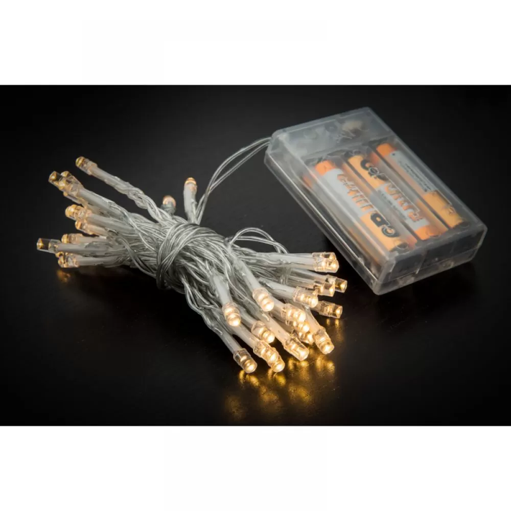 Μπαταρίας led με σταθερό φως. 40led, ανα 5εκ,μήκος 2 μέτρα. Διάφανο καλώδιο με ζεστό λευκό φως. Λειτουργεί με 3x2A μπαταρίες που ΔΕΝ περιέχονται.