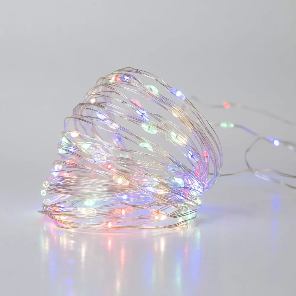 Εσωτερικού και εξωτερικού χώρου σύρμα microled. 100led, ανα 5εκ, 5 μέτρα συνολικό μήκος, ασημί σύρμα και πολύχρωμα λαμπάκια. Αναβοσβήνει με controller 8 προγραμμάτων. Δεν επεκτείνεται.