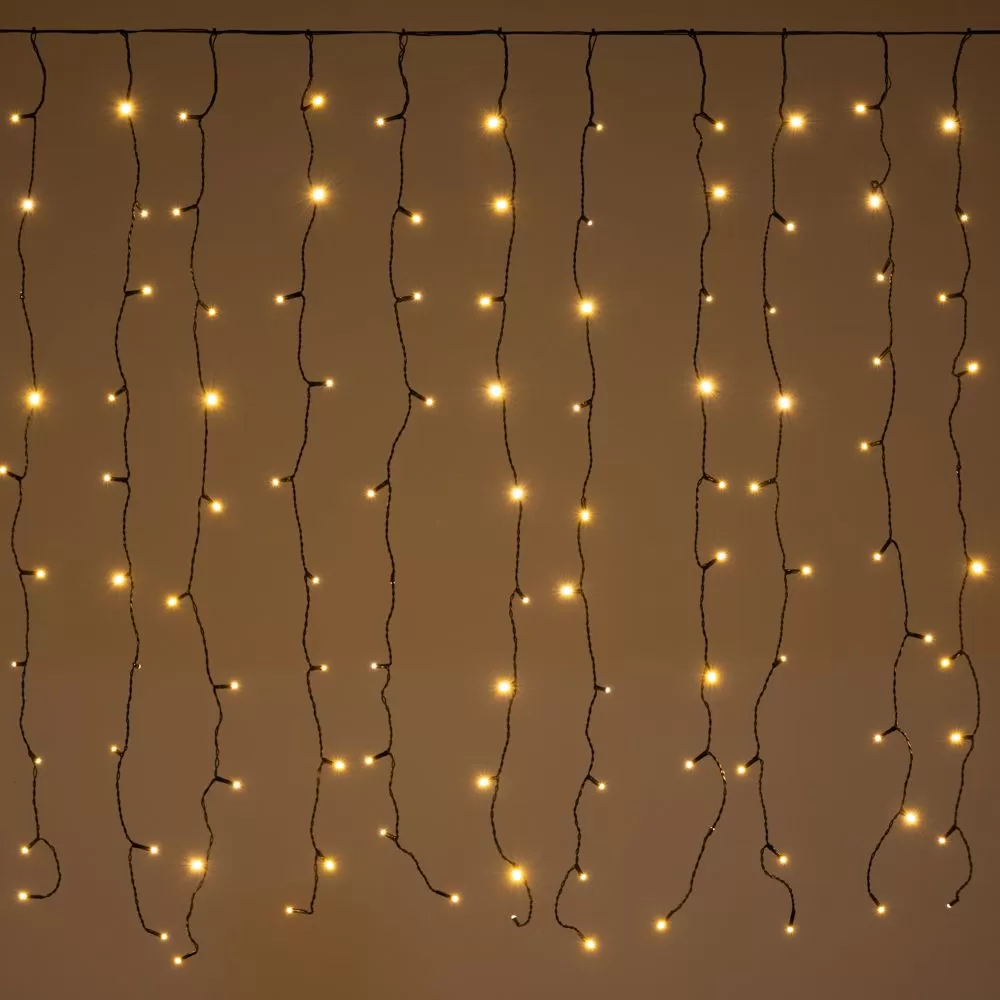 Εσωτερικού και εξωτερικού χώρου κουρτίνα επεκτεινόμενη έως 3 φορές. 200led σε 20 γραμμές,ανα 10εκ, με 10λαμπάκια η καθεμία. Πλάτος 2 μέτρα και ύψος 1 μέτρο. Σταθερό ζεστό λευκό φως με πράσινο καλώδιο. Συσκευασία σε διάφανο πλαστικό δοχείο με καπάκι.
