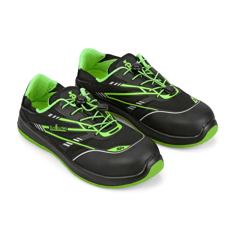 Πιστοποιημένα παπούτσια ασφαλείας εργασίας Hybrid από την εταιρία Euroroutier, ιταλικής προέλευσης, κατασκευασμένα από υψηλής ποιότητας υλικά σε συνδυασμό μαύρου και πράσινου lime χρώματος, πλήρως εργονομικά και ανθεκτικά, σχεδιασμένα για μέγιστη προστασία και άνεση σε απαιτητικές συνθήκες εργασίας. Ένα υβριδικό, εργονομικό μοντέλο παπουτσιών, που διαθέτει αναδιπλούμενη φτέρνα στο πίσω μέρος, η οποία είτε παραμένει ανοιχτή για να μπορείτε να τα φορέσετε ως κανονικά παπούτσια είτε παραμένει διπλωμένη προς τα κάτω για να μπορείτε να τα φορέσετε ως σαμπό. Ιδανικά για επαγγελματίες, που χρειάζονται αξιόπιστα παπούτσια ασφαλείας, προσφέροντας ευελιξία, ασφάλεια και προστασία σε δύσκολες συνθήκες εργασίας. Τα πιστοποιημένα παπούτσια Hybrid είναι, επίσης, κατάλληλα για επαγγελματίες οδηγούς, προσφέροντας άνεση και στυλ σε κάθε ταξίδι!