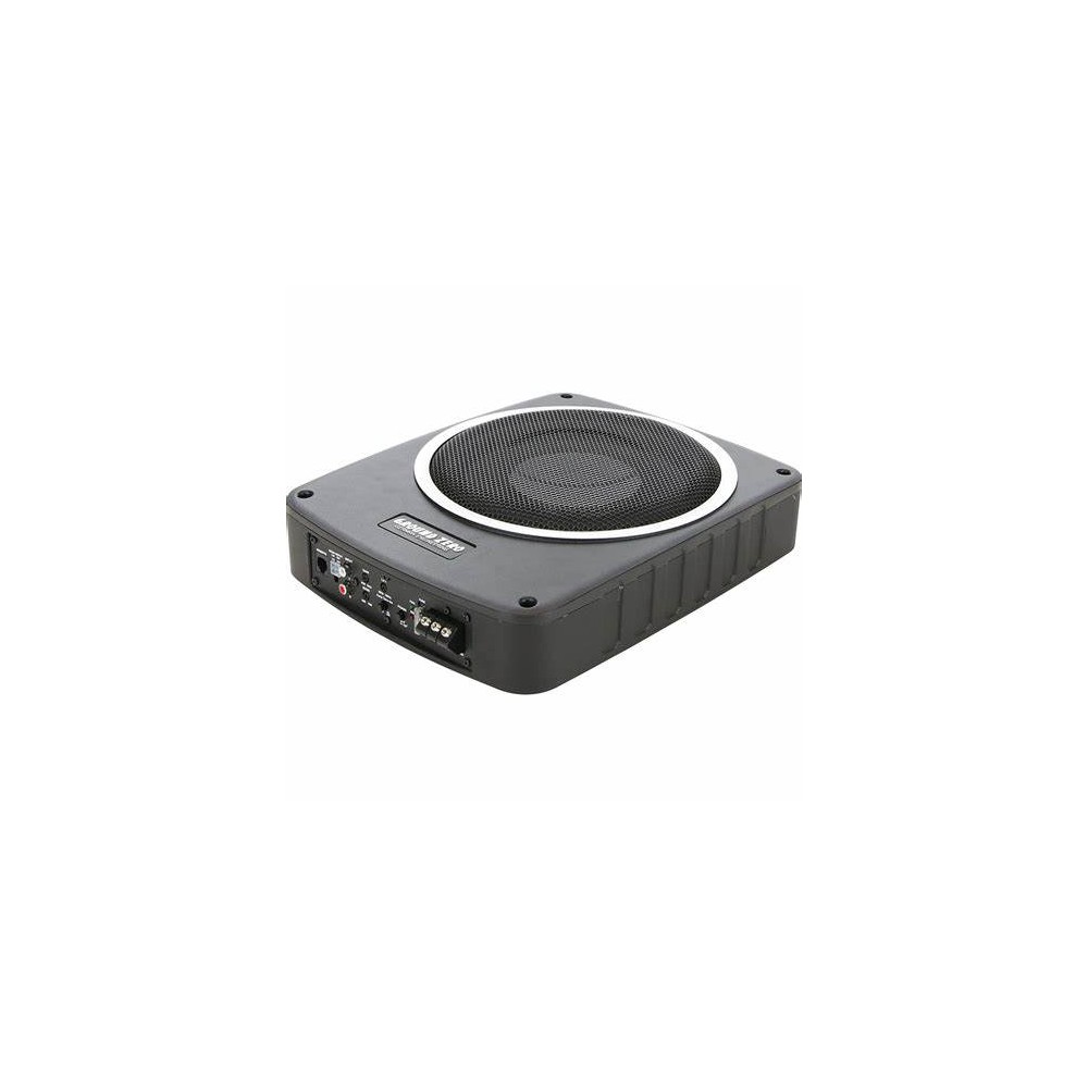 180 Watts max 10″ high quality flat active subwoofer with aluminum cast enclosure Flat under-seat enclosure with amplifier and 8″ subwoofer Incl. remote control 120/180 Watts amplifier Aluminum cast housing High level input Automatic turn-on function Low pass filter Phase correction Incl. wiring kit Model Active Subwoofer Box Diameter 25 cm / 10″ Amplifier Power (RMS/max.) 150 / 210 Watts Version Underseat mounting Frequency Response 25 – 150 Hz Low Pass Filter 40 – 150 Hz Phase Setting 0° / 180° Housing Cast aluminum Dimensions (W x L x H) 365 x 270 x 80 mm / 14.37″ x 10.63″ x 3.15″