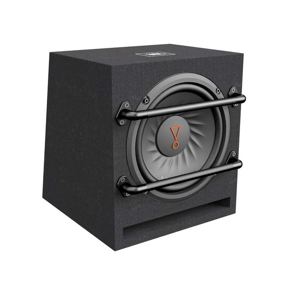 JBL's jaw-dropping BassPro 8 subwoofer measures less than a cubic foot and delivers an impactful performance. Inside the slot-port enclosure is a system tuned 100 watts RMS class D amplifier and 8" (200mm) subwoofer. The compact BassPro 8 will provide tight, deep bass in any car audio system. The subwoofer and amplifier have been engineered as a system to ensure great distortion-free bass even at high output levels. The rigid lightweight polypropylene woofer supplies the signature punch and clarity of JBL bass. When it's time to show and shine, the bass EQ control is good for a 9dB boost. With the legendary JBL® logo stamped front and center on the dust cap and the oversized protection bars, you have a bass system ready to do businessGeneral Specifications