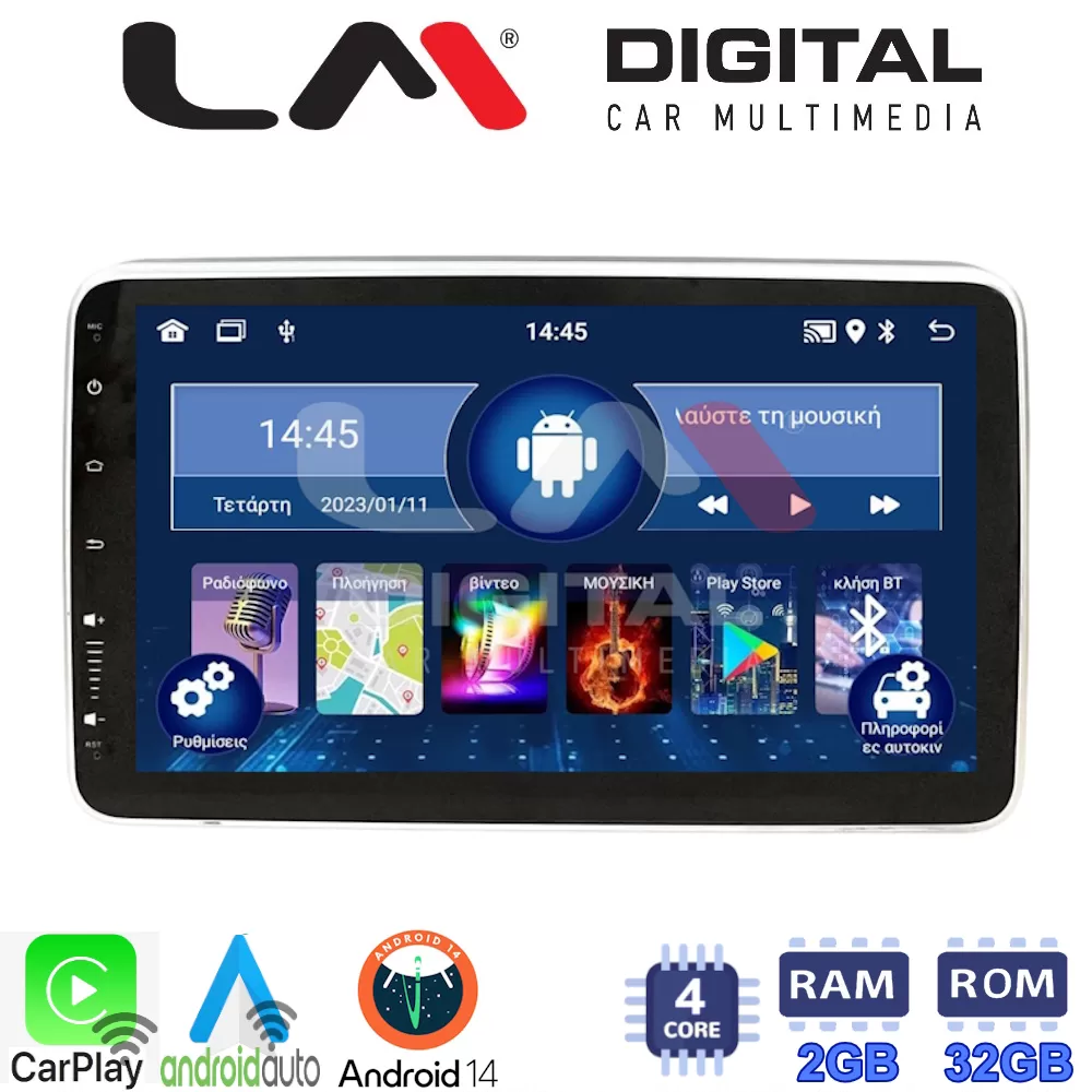 - Οθόνη universal τύπου tablet με 1DIN βάση από πίσω